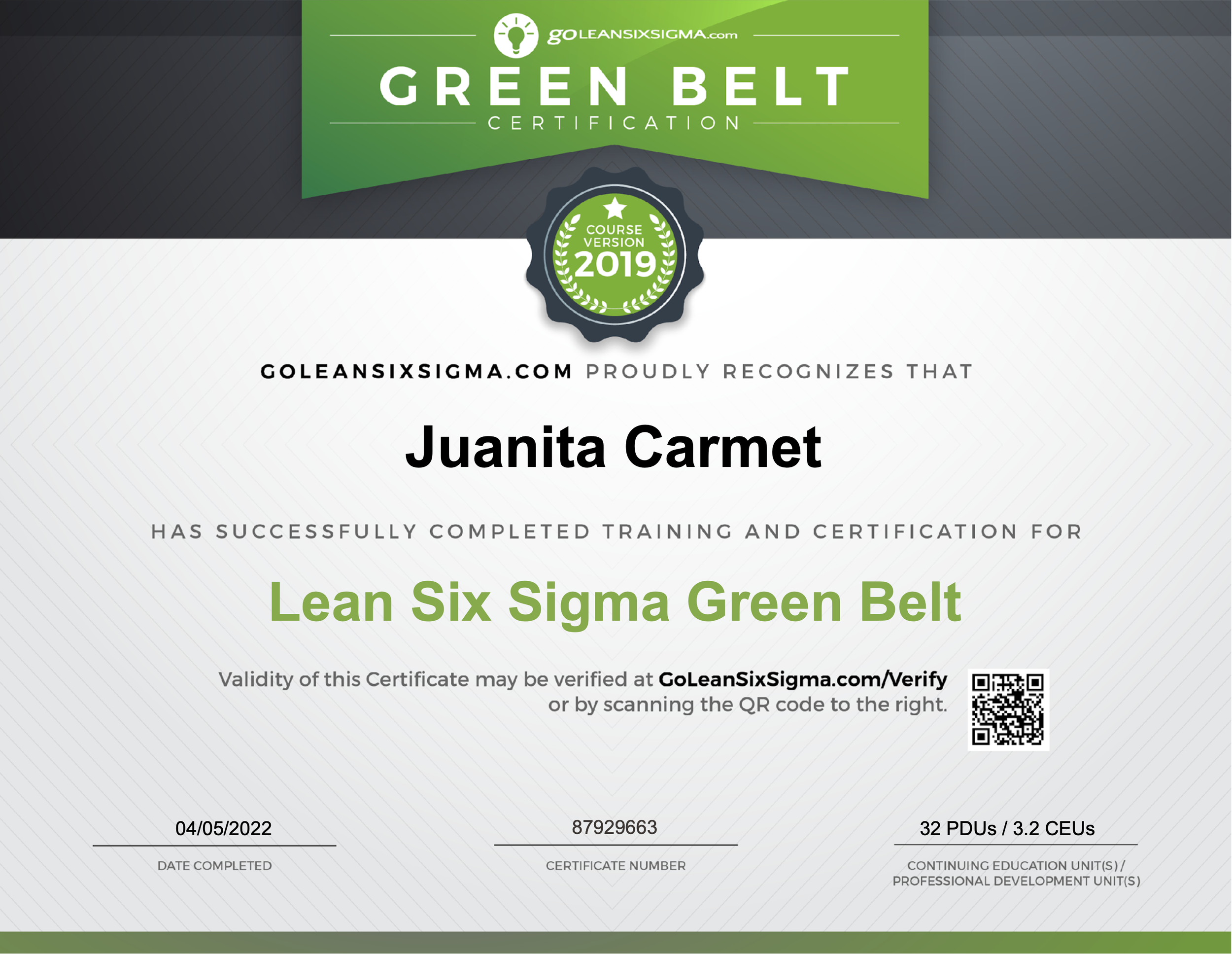 A Commitment to Growth - and Apparently, Certifications.Lean Six Sigma Green Belt, 2022